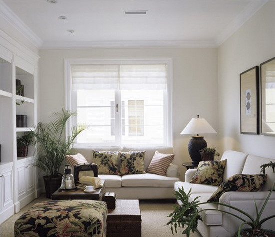 如考慮到其他因素,不得不將沙發(fā)擺放在沒有墻的方位,最好制造一個人造靠山以補救其不足,像屏風、博古架、矮柜、高大的綠色植物等都是不錯的選擇。