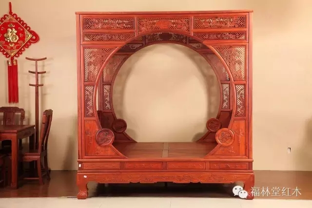 三、架子床:架子床,紅木家具傳統臥具。根據其設計的不同,可分為:四柱床和六柱床。它式樣頗多,結構精巧,裝飾華美,多以歷史故事、民間傳說、花馬山水等為題材,含和諧、平安、吉祥、多福、多子等寓意。其風格古樸大方,堂皇富麗。我們福林堂紅木在挖掘古典架子床的基礎上,嚴格遵循中式家具榫卯要求的基礎上推出福典系列架子床,在型、藝、韻各方面堪稱經典。